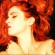 Fire Goddess with arms wide open in an inviting pose. Phoenix flying down and facing toward the left.